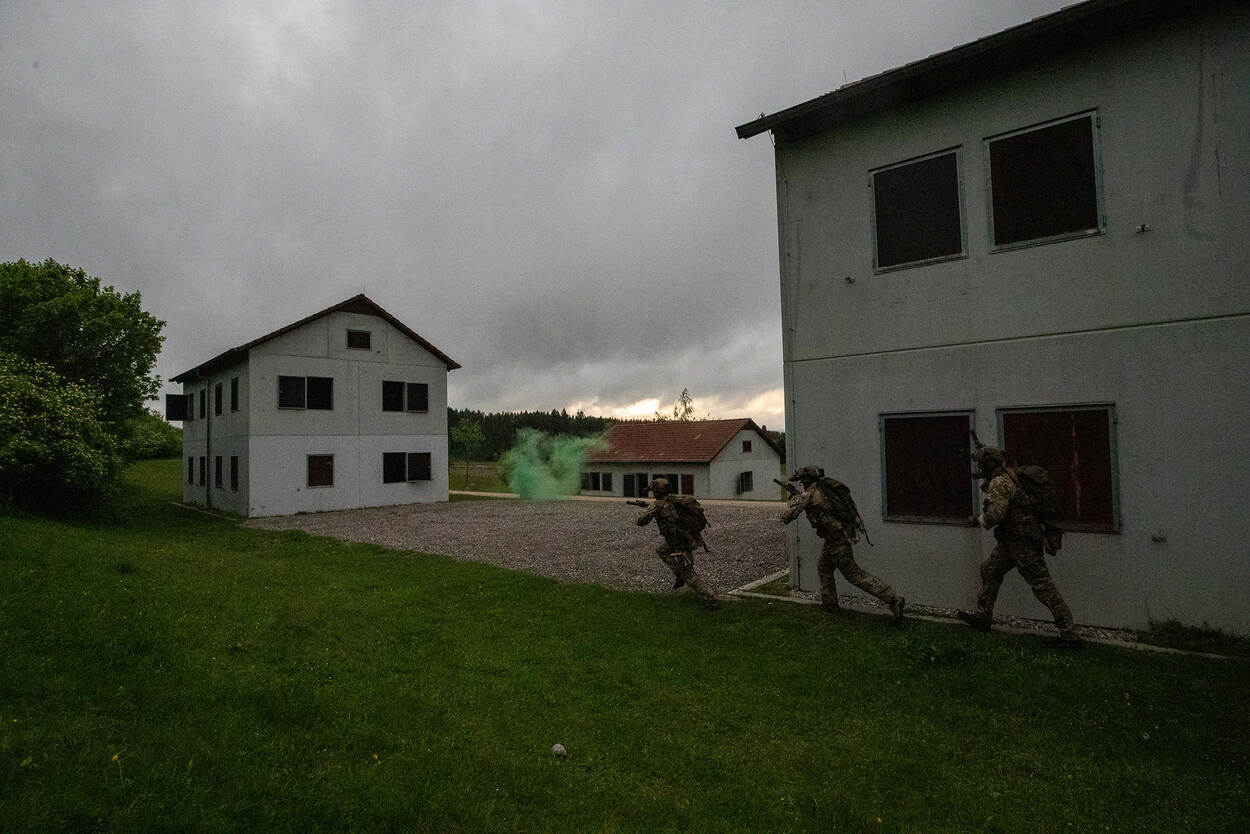 De militairen beoefenen in het trainingsdorp Dinohausen het snelle en offensieve werk, ofwel Direct Action. Daarbij leren ze onder meer informatie te verzamelen over een object. Wie zitten erin? Welke bedreigingen kunnen we verwachten? Aan de klus komen normaliter helikopters te pas, maar door onvoorziene omstandigheden nu even niet. Als alternatief worden de VCO’ers in een snelle actie met een bus in Dinohausen gedropt. Overigens komen de heli’s later bij oefeningen in het in het noordelijk deel van het oefenterrein gelegen Calw wel als gepland in actie. Hoofd Instructiepeloton Commando-opleidingen kapitein Rob relativeert de programmawijziging: “Een noodplan is een goede oefening. Je leert anticiperen op een noodsituatie.”