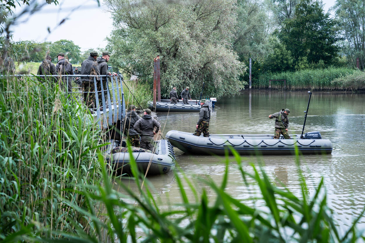 Aqua Engineer doet meteen de naam eer aan, als een veertigtal pantsergenisten zich bij kapitein Jurjen voegt voor de briefing. “Welkom in de Biesbosch! Wie heeft Buienradar al uitgespeeld? Het regent! Eén ding scheelt: er zit meer water onder, dan boven je. Dit wordt jullie oefengebied tot morgenochtend.” De regenpakken gaan aan, de aanvalsboten worden geprept, de rantsoenen uitgedeeld en weg zijn de landmachters, het water op.