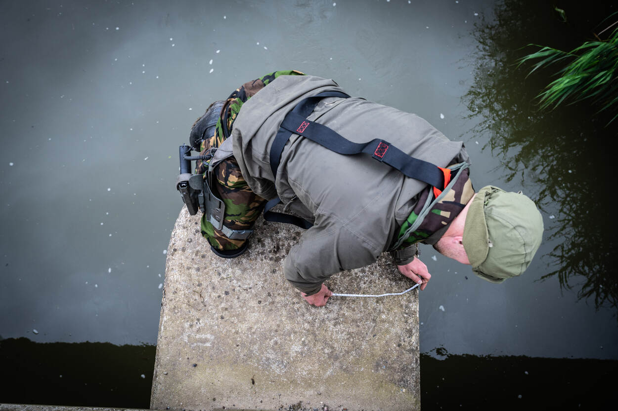 Een brugverzwaring, waarnemingslaan, storend mijnenveld of een casus voor de Combat Life Saver: alles komt voorbij. Het maakt dat er een militair gestrekt op de brug over het watertje de Bevert nabij Werkendam ligt. Ook wel ‘meetlat maatje Roel’, lacht een sergeant. Hij en zijn groep voeren een brugverkenning uit.