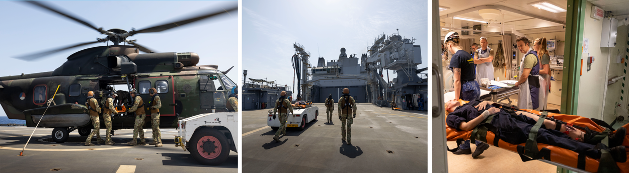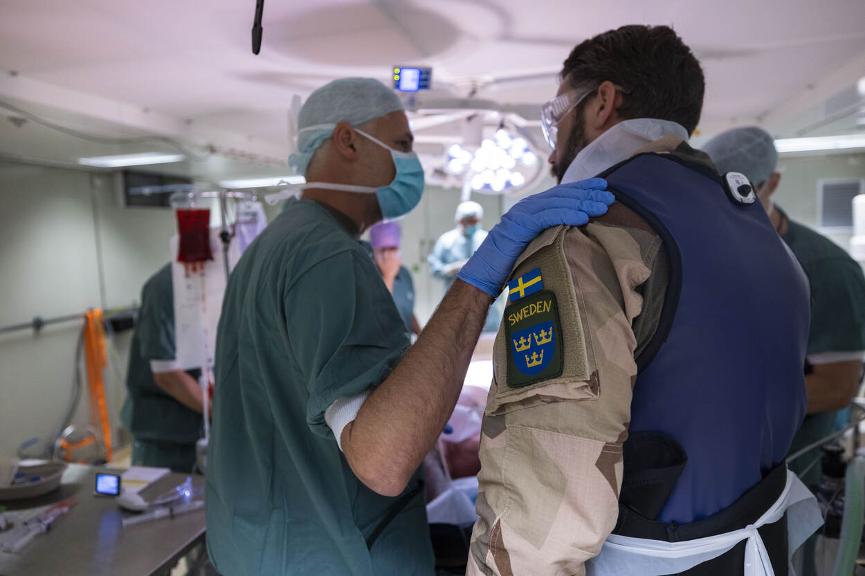 Het chirurgische team bestond uit Nederlandse en Zweedse specialisten, die mede dankzij veelvuldig oefenen uitstekend op elkaar ingespeeld waren. Dat laatste vertelt majoor Martin, traumachirurg en commandant van het Zweedse detachement. Zijn groep bestond uit 12 medici van met name de Zweedse landmacht. Al voor het aan boord gaan waren zij doorgewinterd in het stabiliseren van gewonden, diagnose stellen, gewondenselectie (triage) en -transport, röntgenfoto’s maken, bloed toedienen en meer.