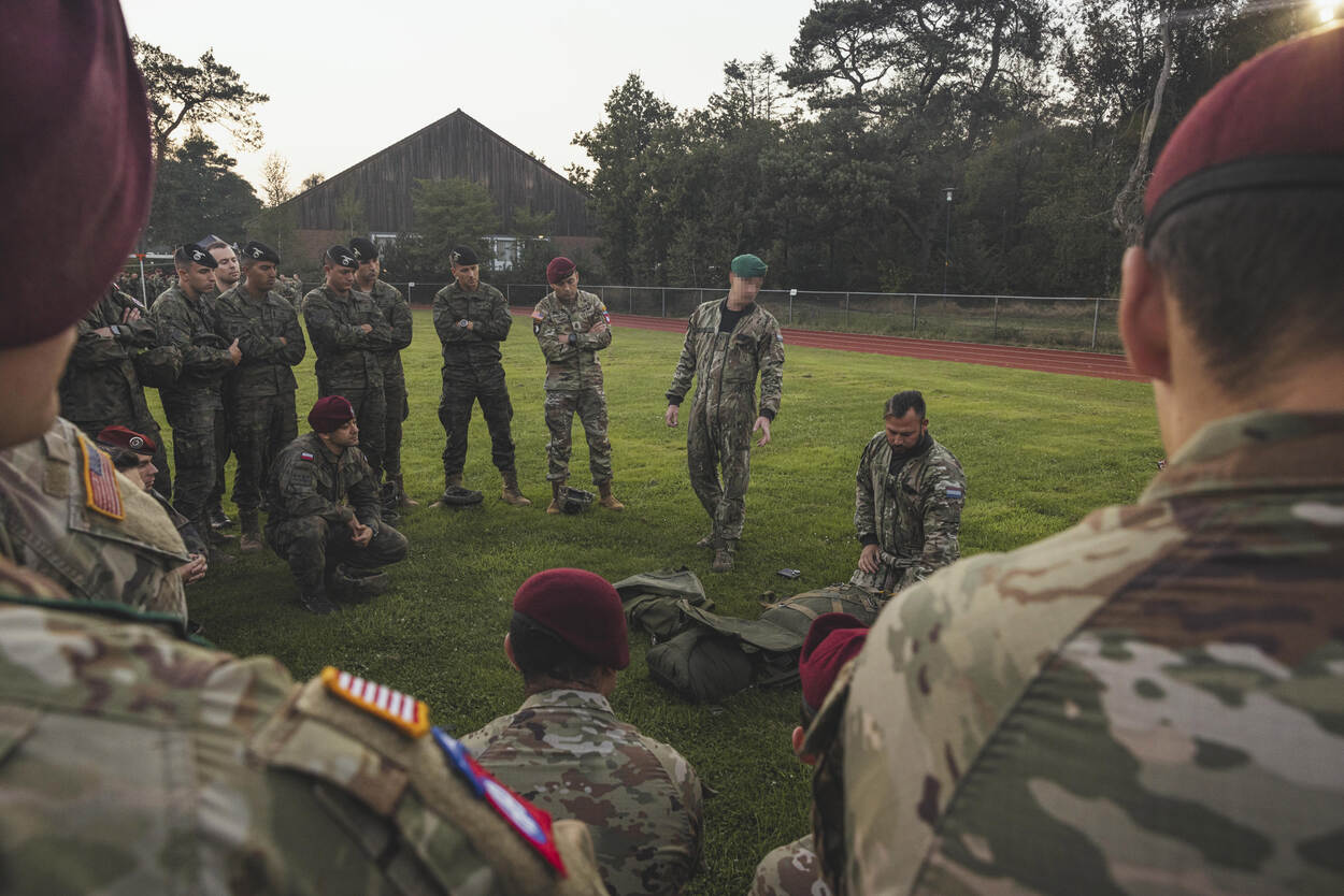 Trainen brengt risico’s met zich mee. Enkele Rode Baretten kneusden enkels tijdens een harde landing, een Duitse para moest zelfs even naar het ziekenhuis. Sommige sprongen werden uit voorzorg gecanceld of uitgesteld omdat het te hard waaide. Naast weersomstandigheden, die altijd roet in het eten kunnen gooien bij luchtlandingsoperaties, ziet generaal Grandia meer uitdagingen. “Die liggen vooral op het gebied van de internationale samenwerking. Het is communicatie en soms zelfs letterlijk de taal die je wel of juist niet vloeiend spreekt. Engels is de voertaal, maar er doen ook Polen, Fransen, Spanjaarden en Portugezen mee. Daarnaast heeft ieder land natuurlijk zijn eigen procedures en uitrusting. Gelukkig kunnen we terugvallen op de experts van de Defensie Paraschool. Pas als zij groen licht geven, mag bijvoorbeeld een Nederlandse para springen met een Pools valscherm."