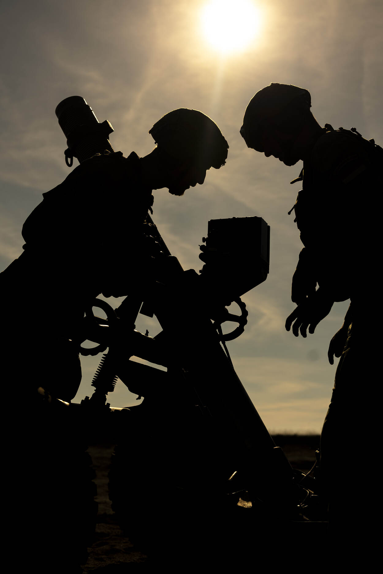 ‘Stuk 2, richting 0695, elevatie 1167!’, klinkt het luid vanuit het FDC. Een korporaal bij de betreffende mortier herhaalt de gegevens en collega’s draaien de standen op het stuk.