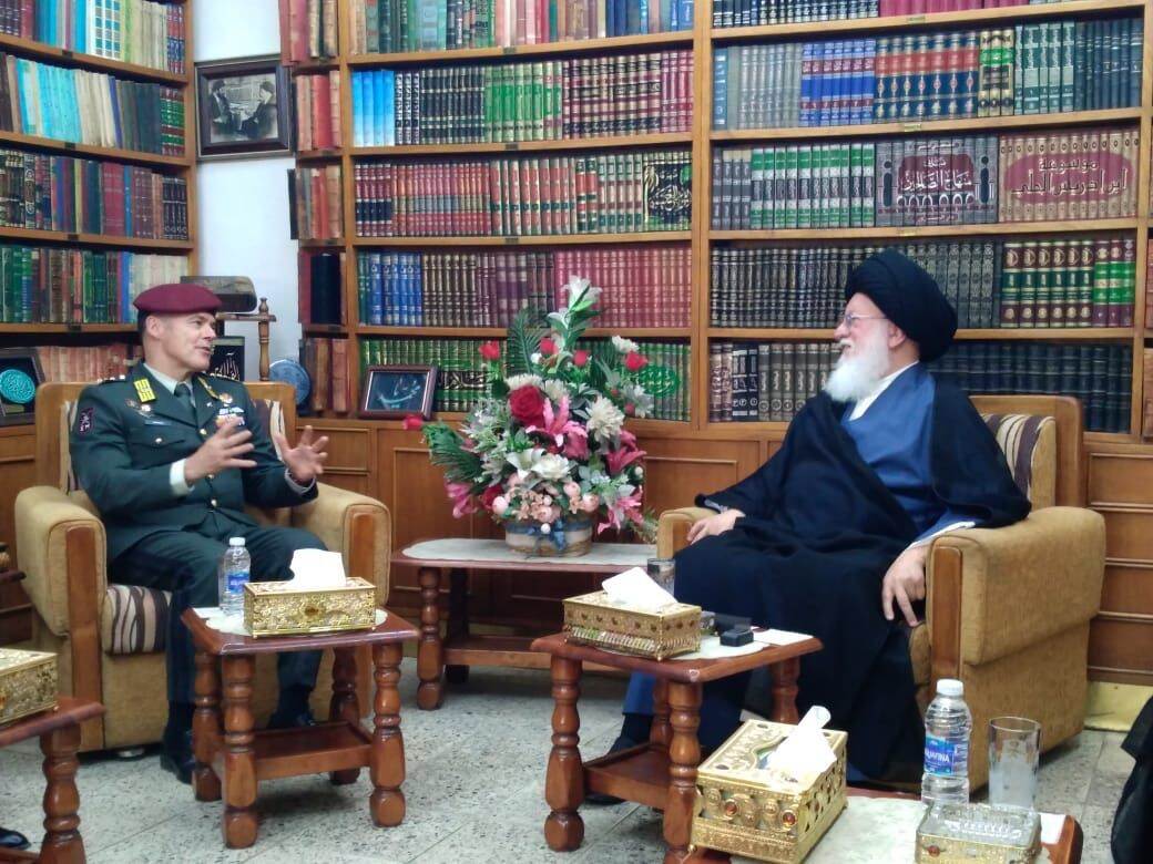 Schreurs in gesprek met een van de geestelijk leiders in Irak, Hussein Al-Sadr.