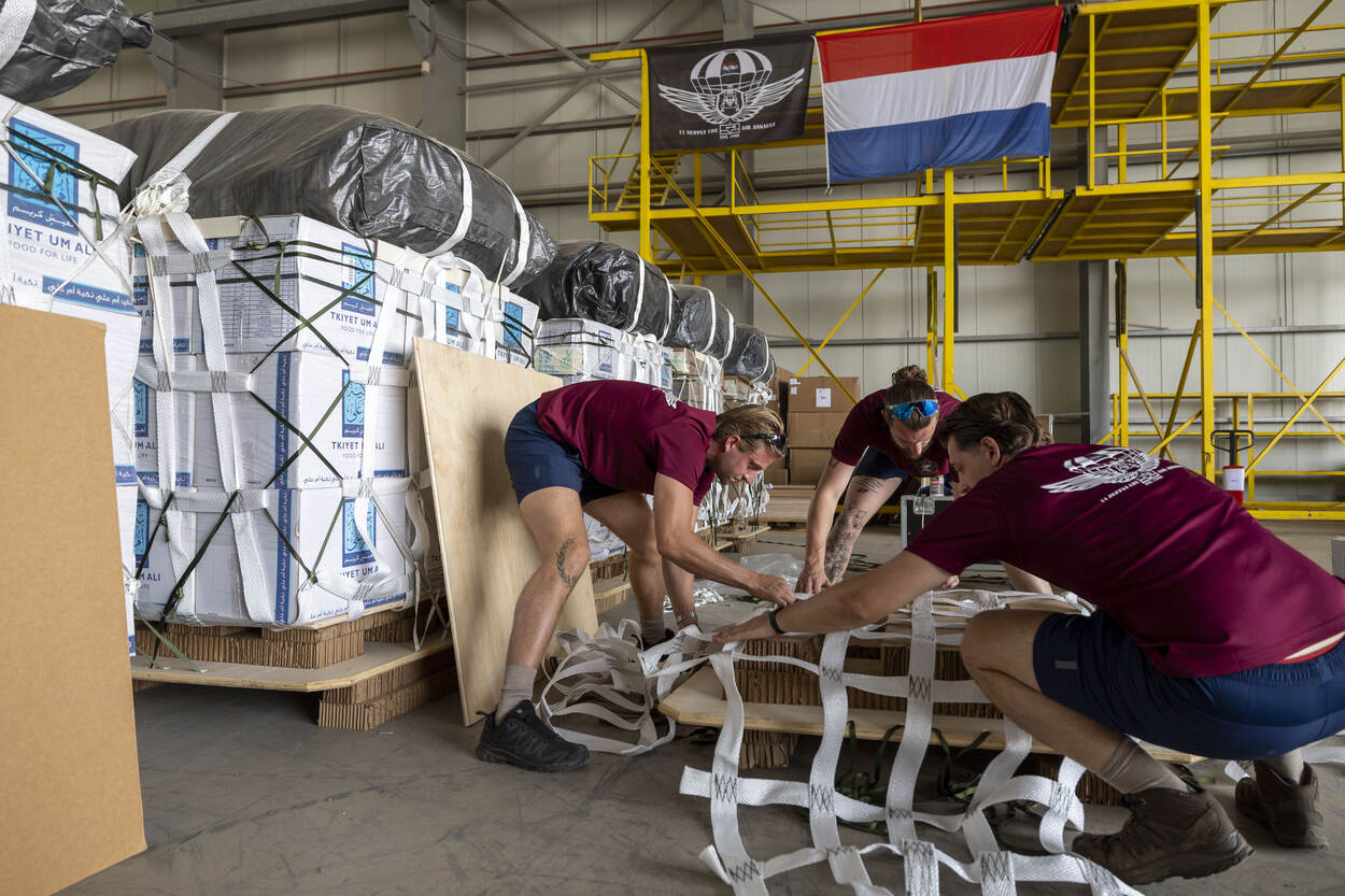 Nederland airdropte onlangs tonnen hulpgoederen boven het hongerlijdende Gaza. Riggers van 11 Luchtmobiele Brigade zorgden ervoor dat de bundels goed en veilig werden ingepakt.