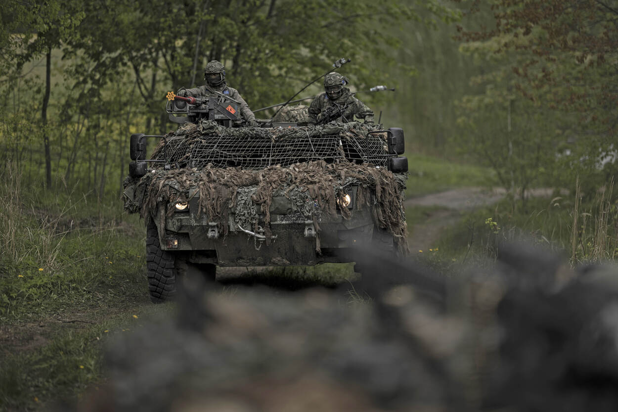 Militairen rijden in een Fennek-verkenningsvoertuig in Litouwen.
