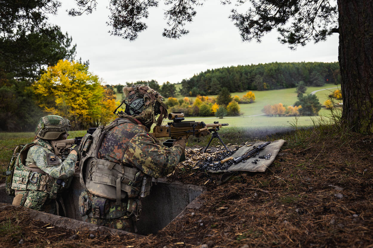 Duitse en Nederlandse reservisten trainden recent schouder aan schouder in Hammelburg; qua omvang niet te vergelijken met Nederlandse oefenterreinen. De Truppenübungsplatz in Beieren biedt uitgestrekte bossen, heuvelachtig terrein én het realistische Bonnland. In dat oefendorp, compleet met kerk en vakwerkhuizen, trainden de militairen het optreden in verstedelijkt gebied.