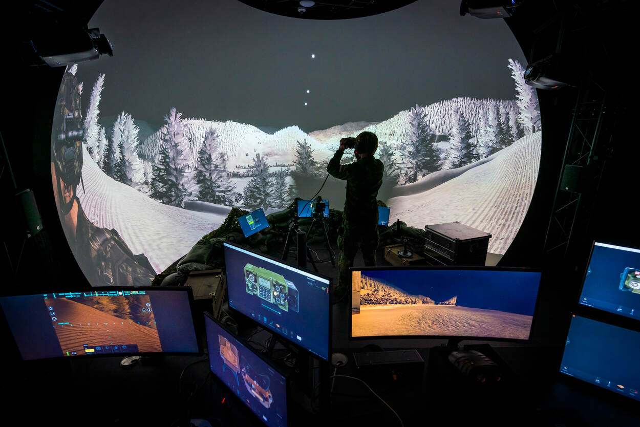 Jur: “In de dome en cilinder kunnen ze in hun sector om zich heen kijken en het lijkt daardoor net alsof de FO en JTAC daadwerkelijk op locatie zijn. We kunnen in verschillende terreinen trainen; Europa, Afrika, het Midden-Oosten en Azië. Een aantal terreindelen in Nederland en Duitsland zijn digitaal zeer gedetailleerd nagebootst. Zo kunnen militairen in het echte gebied een oefening of inzetoptie voorbereiden en deze daarna uitvoeren in de simulator.”