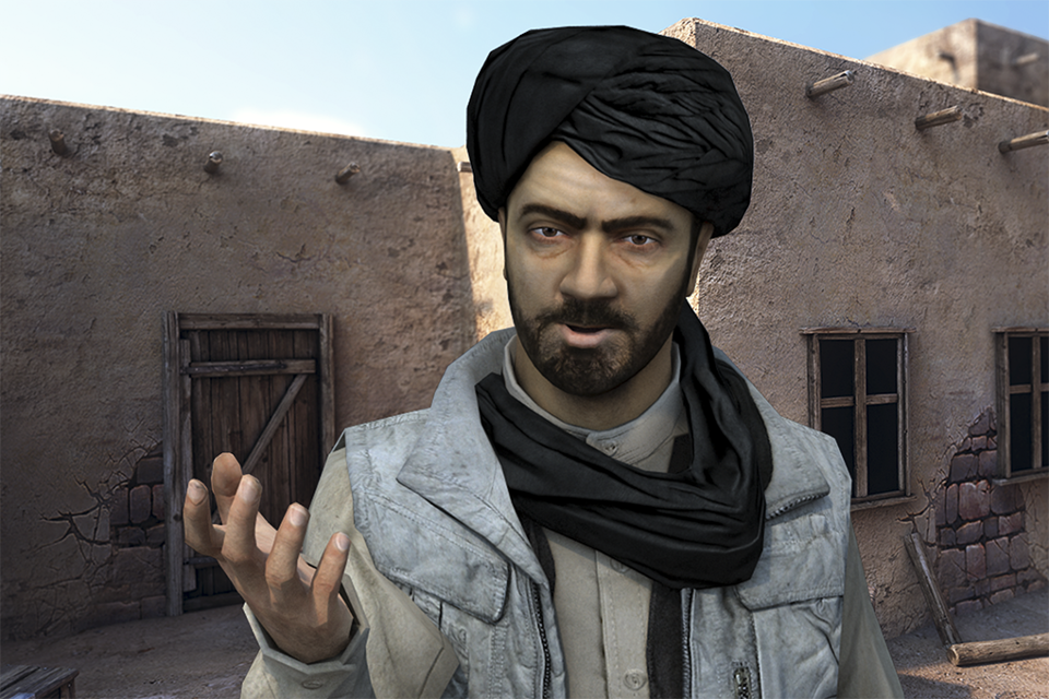 “In het virtuele trainingsprogramma Cultura brengen we de technieken uit de game industrie en animatiefilms uit Hollywood samen”, begint Loren Roosendaal van IC3D Media. “De man op het scherm heeft niet alleen kenmerkende Arabische kleding aan”, vervolgt hij. “Ook zijn gezichtsuitdrukking, handgebaren, intonatie en woordkeuze zijn typische gedragskenmerken van zijn cultuur. Met behulp van het programma leer je deze juist te interpreteren. Je oefent culturele en sociale vaardigheden in scenario’s die specifiek zijn afgestemd op het missiegebied.”
