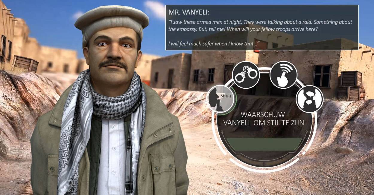 Door trainings-, inlichtingen- en wederopbouwmissies ver buiten onze landsgrenzen komen onze militairen tegenwoordig veelvuldig in aanraking met de plaatselijke bevolking. Kennis van de lokale omgangsvormen, normen en waarden is dan wel zo handig. “Militairen krijgen die nu wel in theorievorm aangeboden”, weet Lennart. “Ze blijven veel minder goed hangen dan het daadwerkelijk ervaren van culturele verschillen. Hoe meer ervaring, hoe beter je reflexen in bepaalde situaties. Dit wordt nu ook weleens in rollenspellen met acteurs beoefend. Behalve dat het erg duur is om dit op grote schaal te doen, kan de kwaliteit ervan enorm verschillen. Met de software, die we in samenwerking met cultuurexperts van Defensie en de Vrije Universiteit Amsterdam ontwikkelen, kan iedere militair zijn culturele vaardigheden individueel, op maat en in eigen tempo trainen.”