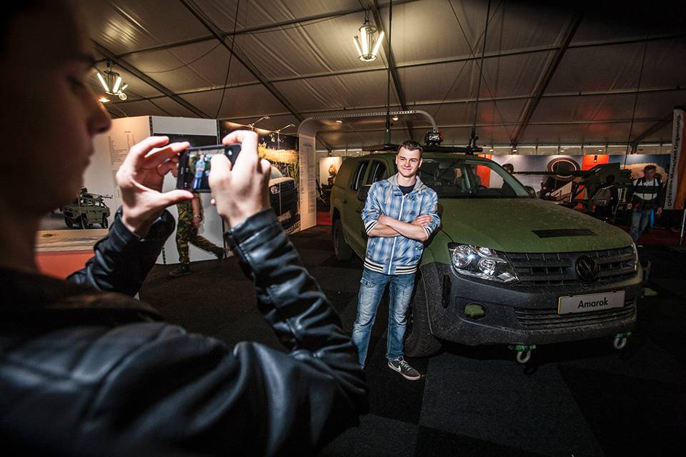 Diverse afdelingen hebben in de grote tent hun eigen stand. Centraal in de hal staat de splinternieuwe terreinwagen, de Volkswagen Amarok. “We zijn hier om mensen enthousiast te maken voor een baan bij DMO, maar dat is lastig. Bezoekers willen dingen vasthouden maar bij DMO voeren we veel ‘ongrijpbare’ zaken uit zoals het besturen van processen. Daarom hebben we zoveel mogelijk materieel neergezet, zoals de Amarok”, aldus Peterse.
