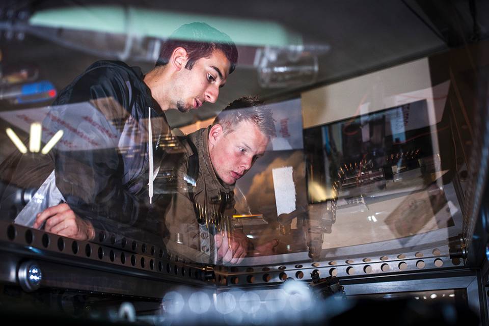 Ook wapens als het lange afstandgeweer Accuracy en het licht ondersteunend automatisch wapen, kortweg LOAW, trekken veel bekijks – en grijpgrage handen van (jonge) bezoekers. Net als een rij laptops. “Hier maken we bezoekers bewust van de gevaren van open wifi-verbindingen”, vertelt Karin van Wijk, getooid met een oranje H4CK3R-pet (wat staat voor hacker). “De meesten hebben geen idee wat er kan gebeuren als je zomaar op een openbaar wifi-punt inlogt."