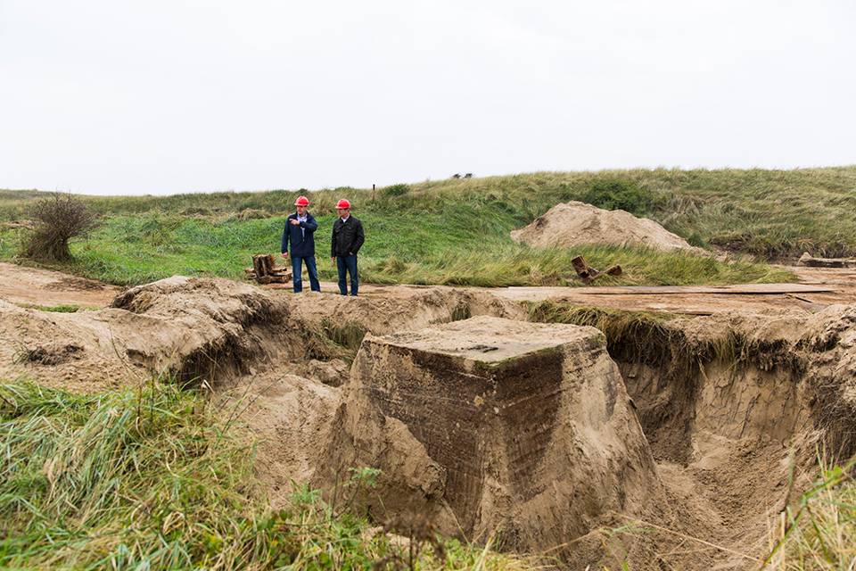 De zogenoemde Eiffeltoren en een 70 meter hoge NAVTEX- mast (Navigational Telex; internationale navigatie- en weerberichtendienst) zijn de laatste van een reeks antenne- installaties die de Directie Vastgoedbeheer door een aannemer laat verwijderen. “Afgelopen zomer verhuisden we de antennes van de Eiffeltoren al naar de Scheveningse vuurtoren en plaatsten we een nieuwe NAVTEX-mast op het antennepark Julianadorp in Den Helder”, vertelt Albert Kromhout die dit project namens JIVC begeleidt. “De overige antennes verplaatsten we in 2013 al naar het zendstation Ouddorp.” De achtergebleven funderingen van zo’n 1 tot 2 vierkante meter markeren het 11 hectare grote duinlandschap. “Die moeten we nu ook verwijderen”, vult Markus aan. “Rekening houdend met allerlei zeldzame begroeiing en diersoorten.”