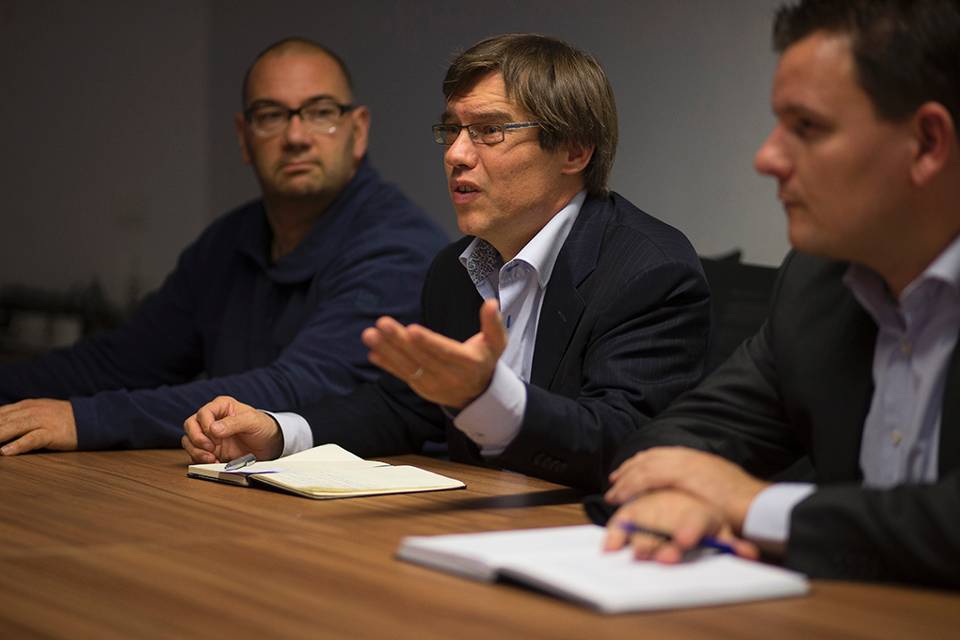 Berry Sanders (midden), technisch hoofd van CGG Safety & Systems, ontwikkelde samen met TNO en APP de Cool Gas Generator-techniek. Hierbij wordt met een temperatuur van een paar 100 graden een vaste brandstof omgezet in pure stikstof op kamertemperatuur. Sanders zit tussen techneut Danny Meeuwessen (links) en projectmanager Teun Schetters van APP in.