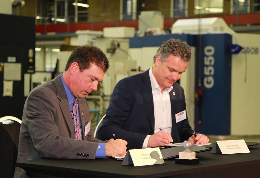 De ondertekening van het contract had plaats in de Brabantse lichtstad (zie foto onder). Het gaat om een investering van ruim 18 miljoen euro. De order heeft een looptijd van 10 jaar. DutchAero,  sinds begin 2014 eigendom van KMWE, verzorgt de uitvoering.
