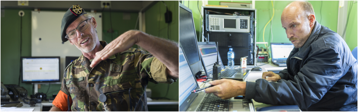 Hiervoor staan 2 zogenoemde Weibel meetsensoren garant, die op de bovenkant van de schietbuis zijn gemonteerd. Na ieder van de in totaal 70 testschoten krijgt Cees Nikkels op zijn computer direct de bijbehorende waarden gepresenteerd. De werking van de Weibel is volgens de technicus gebaseerd op het doppler-principe. Een uitgezonden signaaltje reflecteert op de verschoten granaat, dat wordt opgevangen door de antennes op de loop. “Om de Vo zo goed mogelijk te meten, gebruiken we er 2”, vertelt Nikkels. “Doordat de ene wat verder van de monding is verwijderd dan de andere, ontstaat een klein, verklaarbaar verschil in meters per seconde.”