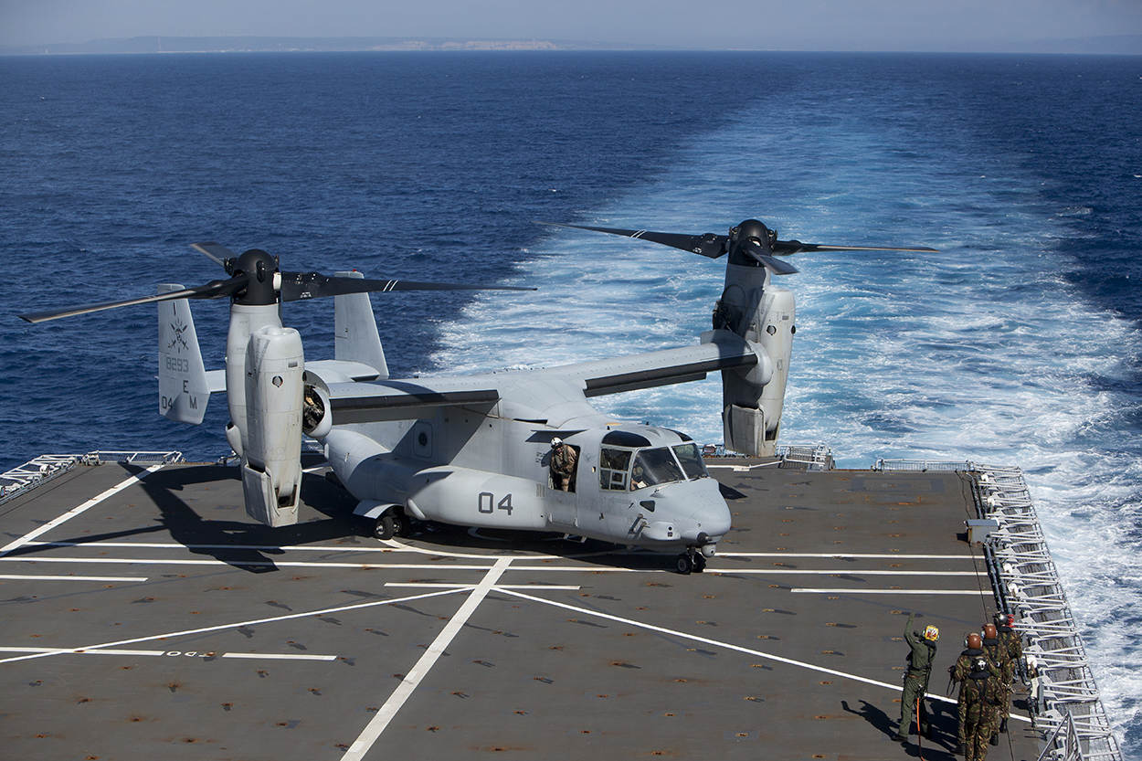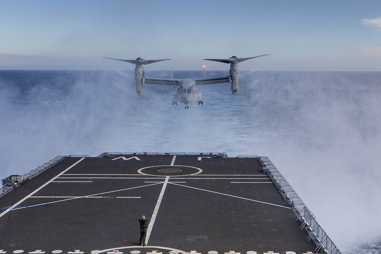De turbomotoren van een Osprey geven in een landing een hitte van circa 500 graden af.
