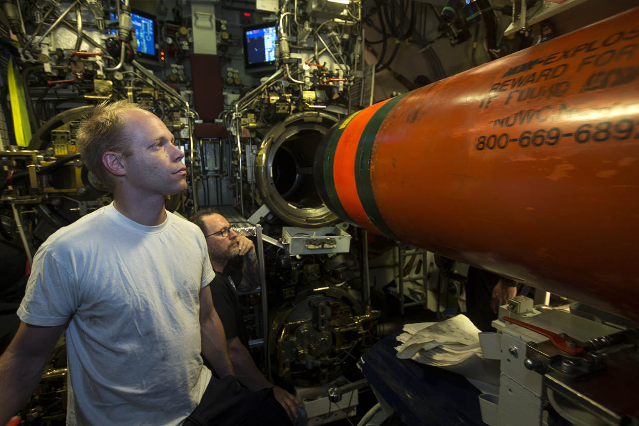 Eenmaal uit de buurt, gaat de eerste torpedo er met een ingehouden dreun vandoor. Een fikse stoot vochtige, samengeperste lucht spuit met grote kracht de boegbuiskamer in. De afvuurinstallatie lost haar overdruk, verklaart systeemverantwoordelijk officier luitenant-ter-zee 2 Jordy van de Mheen. Het is voor het eerste dat de Zeeleeuw een ‘echte’ torpedo verschiet. Weliswaar één zonder explosieven, maar die wel de meeste gelijkenis met het echte werk heeft.