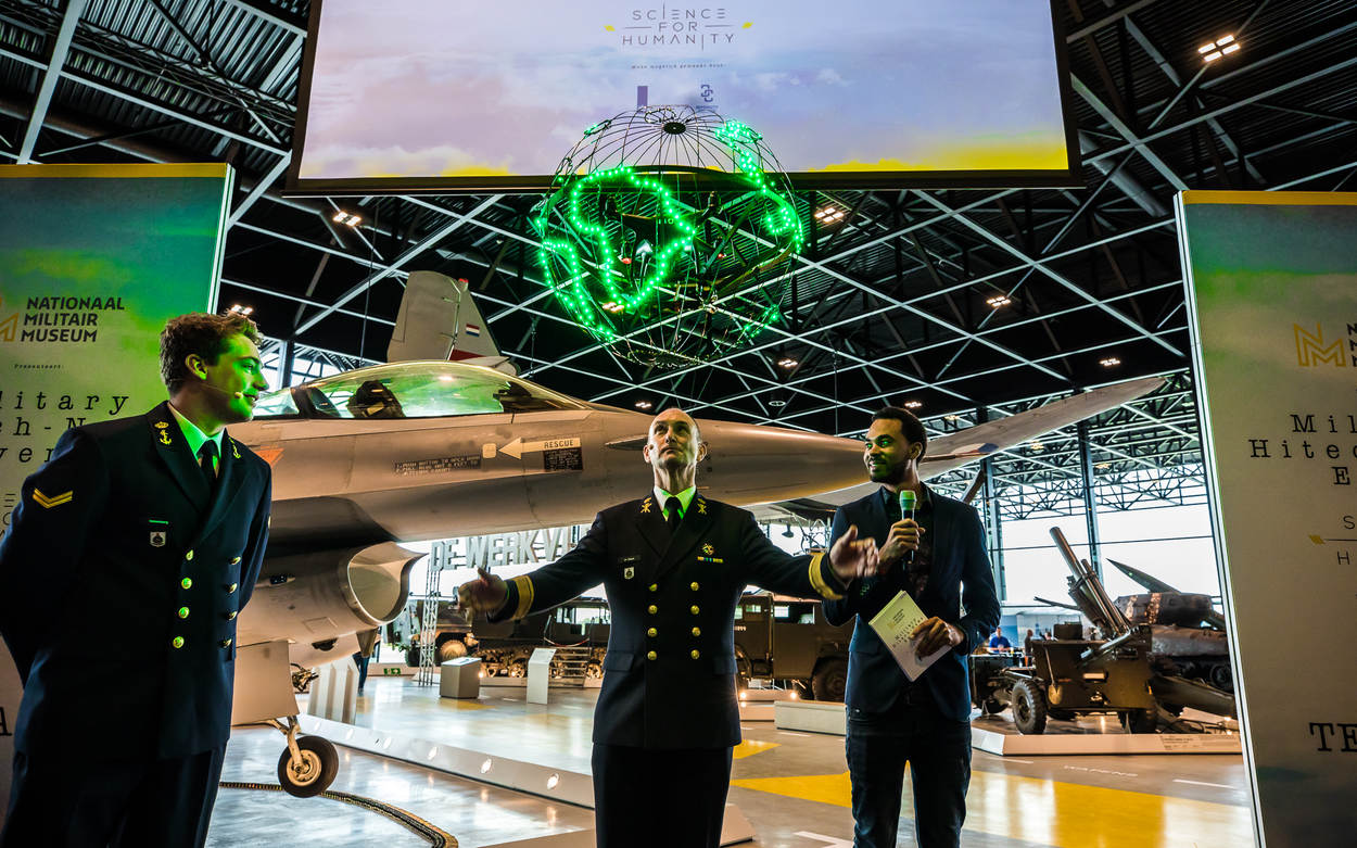 Een veelal jongere lichting scholieren trok naar de hi-techevenementen Defensie Job Experience en Science for Humanity in het Nationaal Militair Museum. Namens mede-organisator DMO opende vice-admiraal Arie Jan de Waard deze gebeurtenis. De deelnemers konden alles ontdekken over uitdagende banen als burgermedewerker of militair bij Defensie. Daarnaast konden ze ook vernemen wat de mogelijkheden zijn om een bijdrage aan de organisatie te leveren in de rol van reservist of werkstudent.