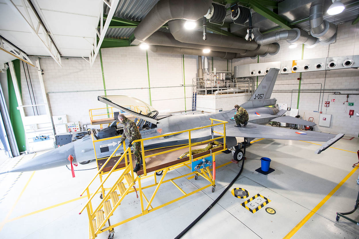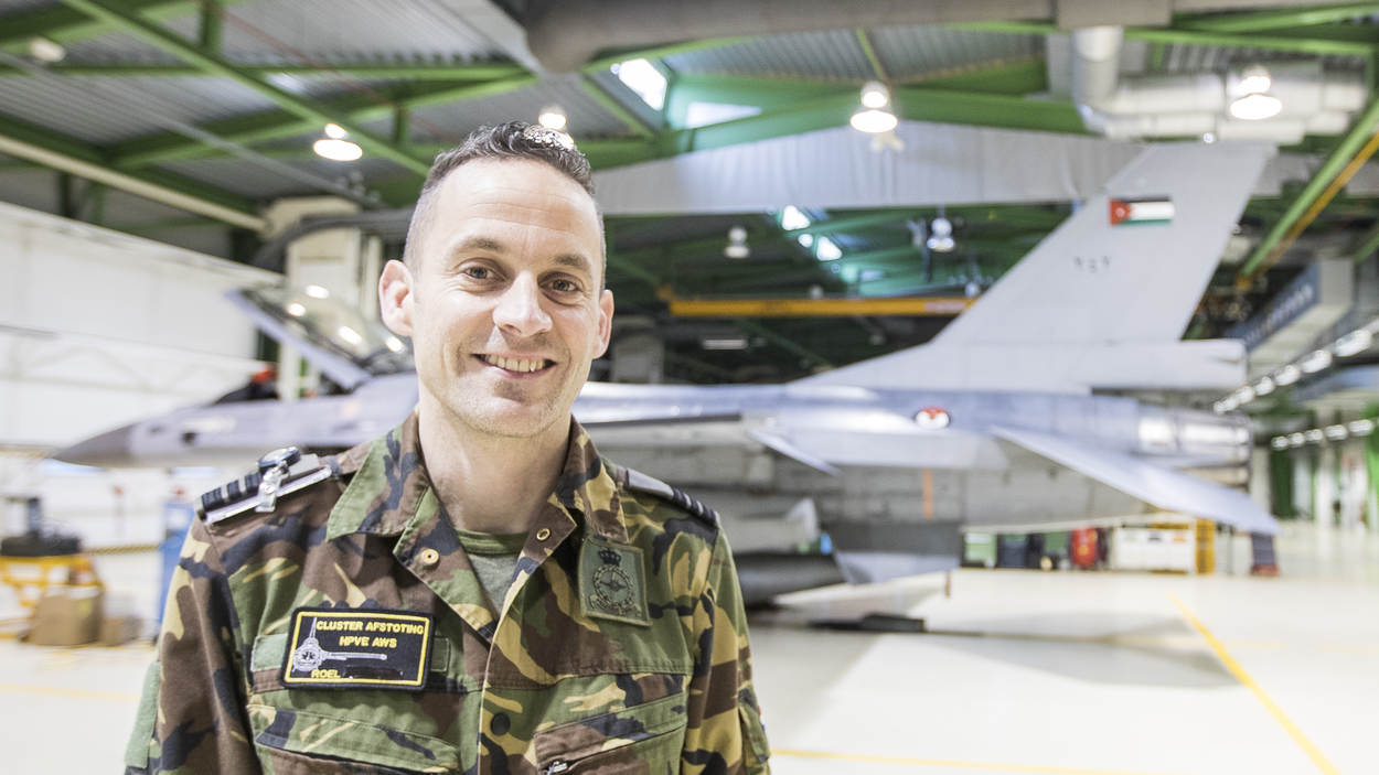Wat er allemaal is aangepast, verwijderd of geïnstalleerd? “Daar doen we natuurlijk geen mededelingen over”, zegt Zwenger stellig. Grote problemen zijn er niet geweest met de toestellen die stammen uit de jaren ’82-’89 van de vorige eeuw. “Merkwaardig genoeg was de verf voor de Jordaanse vlag een van de struikelblokken”, is het enige dat senior engineer majoor Roel daarover loslaat. “Het groen moest speciaal worden gemaakt, want die specifieke kleur was er niet in vliegtuigverf. Het kostte 10 dagen om de Nederlandse kleuren eraf te schuren en vervolgens de Jordaanse aan te brengen. Dat moest laag voor laag. Het leeuwendeel is hier op Volkel gedaan, maar we hebben de vliegbases Woensdrecht en Leeuwarden ook ingeschakeld. De onderlinge samenwerking verliep perfect. Het project heeft prioriteit gekregen bij CLSK, achter de missies. Er zijn voor eerdere CLSK-operaties onderdelen van deze toestellen afgehaald en uitgeleend. Dan is het wel zo prettig als die items voor de acceptatietesten in goede staat terug zijn voor inbouw."