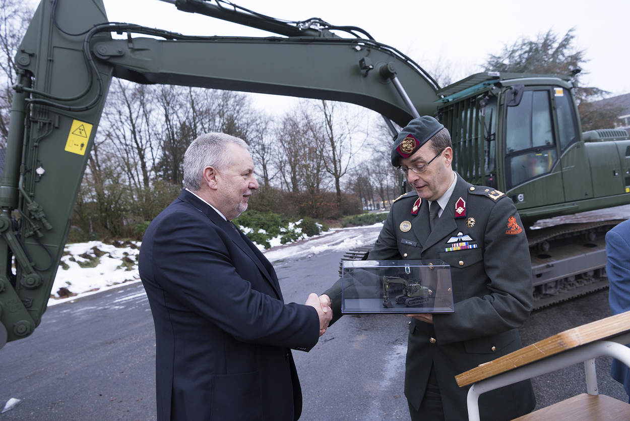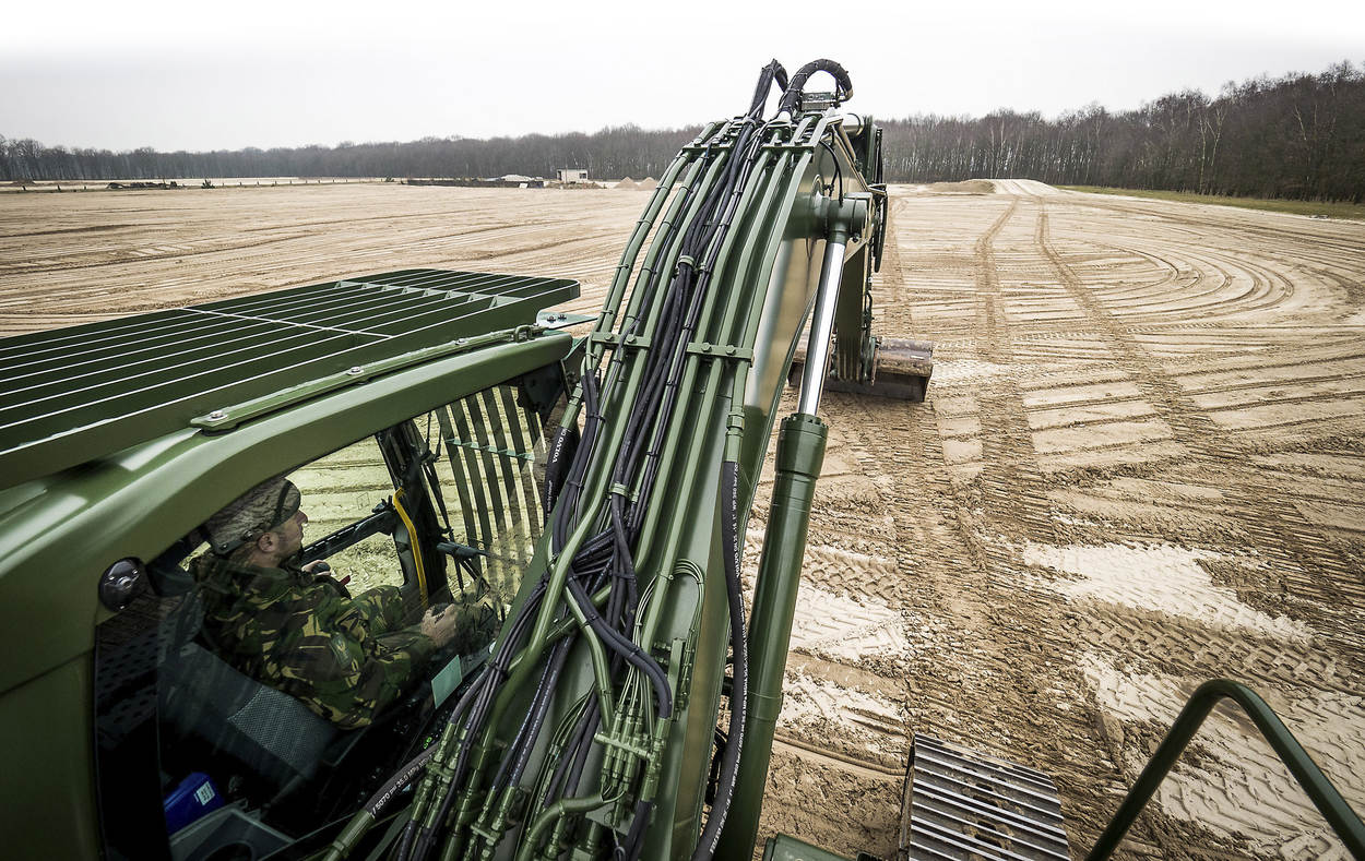 200 machines die worden vervangen door slechts 70? “Dat klopt”, reageert Jacques Roosenboom, projectleider namens de Defensie Materieel Organisatie (DMO). “De krijgsmacht is kleiner geworden de afgelopen jaren. Veel oude grondverzetmachines zijn kapot en staan stil. Die verkopen we of ruilen we in. Van onder meer die opbrengst is de aanschaf van al het nieuws mogelijk.”