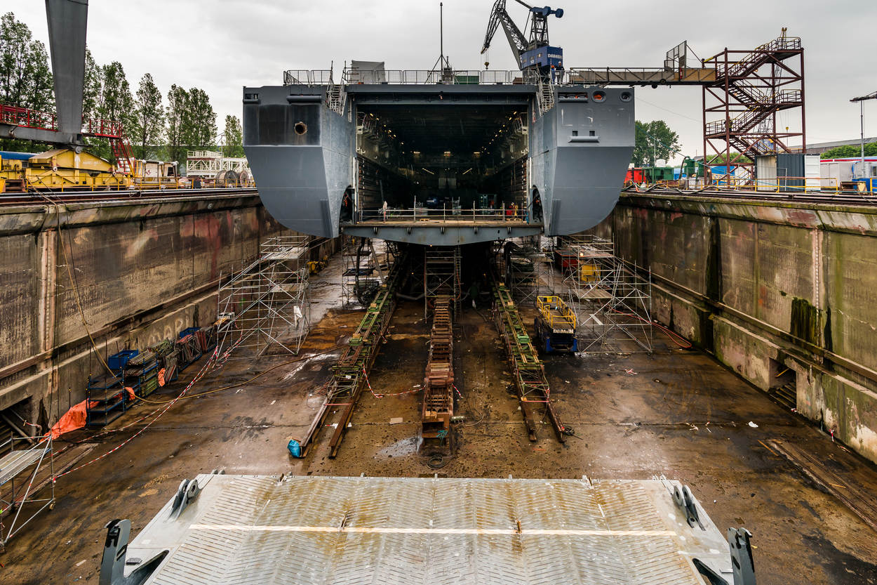 Wie aan een midlifecrisis lijdt, is toe aan ‘groot onderhoud’. Dat geldt voor mensen, maar zeker ook voor schepen. Waaronder Zr.Ms. Rotterdam, 1 van de grootste schepen van de marine. Na 20 jaar ondergaat het amfibisch transportschip een midlife update. Het levensverlengend onderhoud bestaat uit een aantal grote modificaties en talloze kleine klussen. Want met een likje verf á 25.000 liter, zijn ze er nog niet. Wie denkt dat de Rotterdam hierna als nieuw is, komt bedrogen uit, zegt projectleider namens DMO, Roy van Kruisbergen.