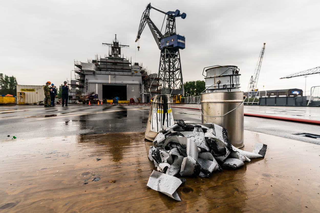 Van der Windt werkt 6 maanden in Amsterdam, waar de Rotterdam in het dok ligt bij Damen Shiprepair Amsterdam. “Zo’n 85 bemanningsleden, voornamelijk van de Technische Dienst, zijn meegekomen. Leven en werken op het schip kan nu niet, dus blijven ze in portocabins ernaast.” Naast de marinemensen lopen er dagelijks zo’n 300 werklieden door het schip van externe bedrijven en onderaannemers. Het projectteam van de DMI begeleidt hen. Naast het geplande werk zijn er zo’n 250 meewerkopdrachten gegund voor bijvoorbeeld extra reparaties aan pompen, afsluiters en elektra. Eind augustus keert het schip terug naar thuishaven Den Helder. “In 6 maanden ronden we daar de 2e helft van het onderhoud af.”