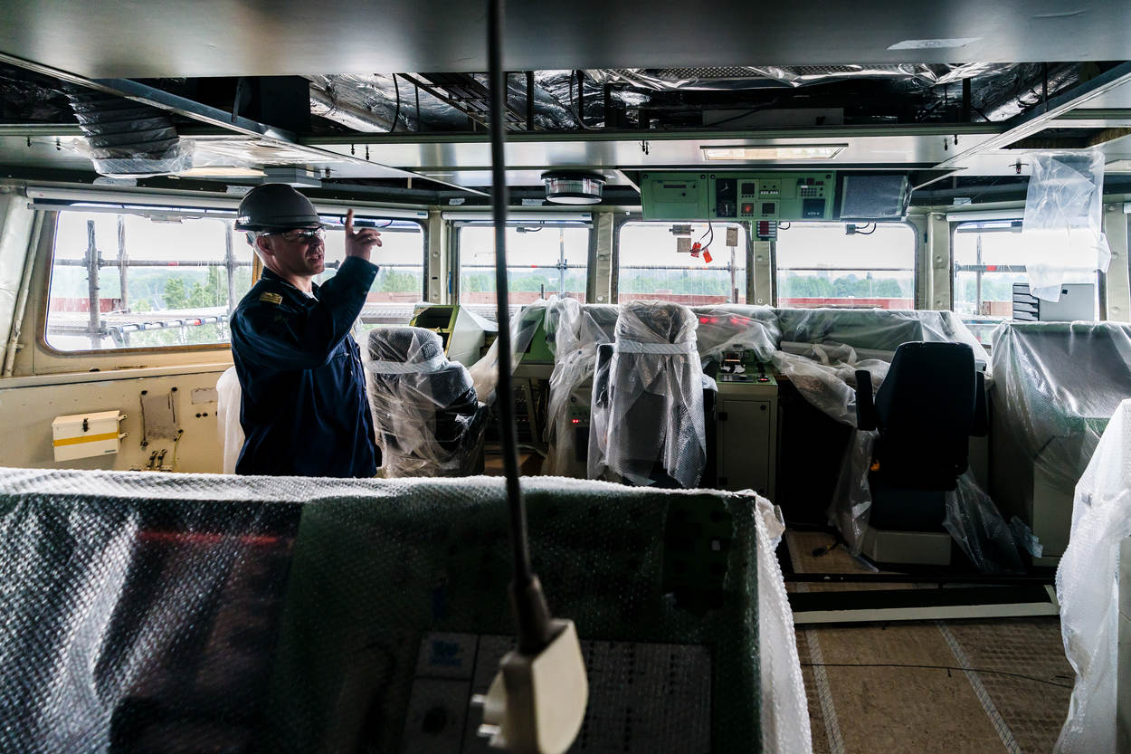 Overste Marcel van der Windt en Roy van Kruisbergen houden de vorderingen aan het schip dagelijks bij.