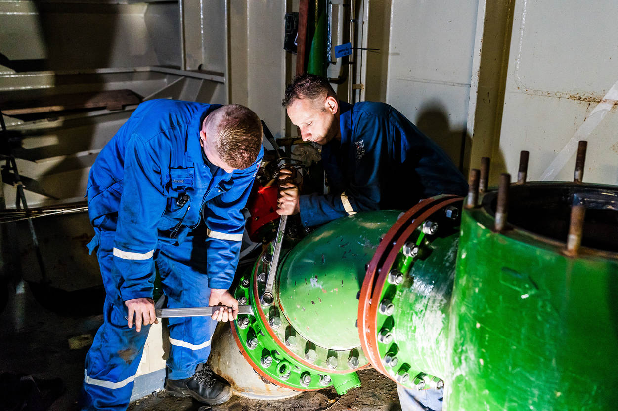 300 meter leiding is vervangen om problemen met verstopte toiletten te voorkomen. Alle stalen leidingen zijn vervangen voor kunststof exemplaren. Voorheen was de bemanning iedere dag bezig met verstoppingen of lekkage.