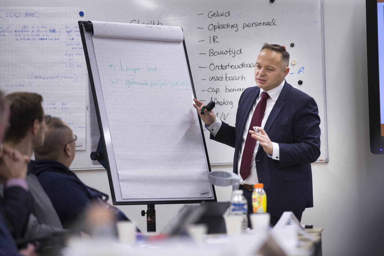 “Wij schaffen bedrijfsmiddelen aan die duur zijn, maar denken te weinig na over wat het na de aanschaf kost. We zijn meer bezig met het rondkrijgen van budget voor de aankoop, terwijl we ook moeten kijken naar de gehele levensduur. In deze cursus krijg ik het totaalbeeld over hoe Defensie LCM moet gebruiken. Als bedrijfskundige vind ik het interessant wat beleidsmakers bedenken en wat dat vervolgens betekent voor de richting van de organisatie. Ik leer hier dat we meer kunnen sturen dan we in praktijk doen. We leveren wel informatie aan het hogere dek, maar geven te weinig bijsturing naar beneden. Alle partners moeten betrokken zijn.”