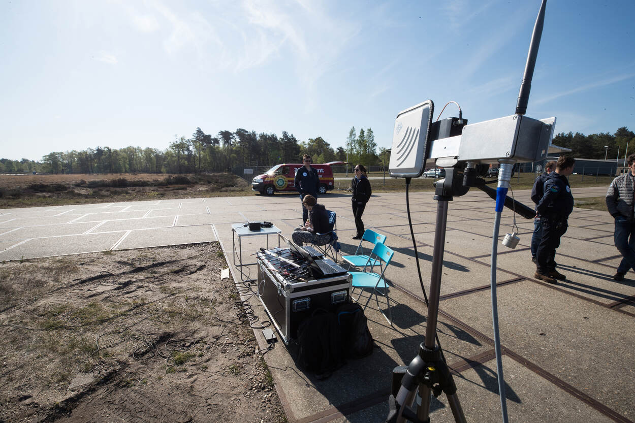 Vlakbij het lanceerplatform stond elektronische apparatuur die de vlucht van de Rocket-Drone registreerde.