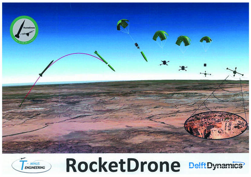 De Rocket-Drone is een gezamenlijk product van Delft Dynamics en T-Minus Engineering. Defensie volgt de ontwikkelingen vanaf de zijlijn.