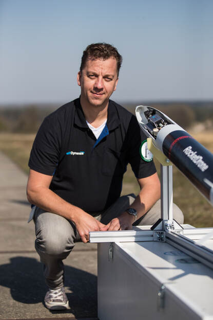 Mark Uitendaal van T-Minus Engineering tekent voor de uitvinding van de Rocket-Drone.