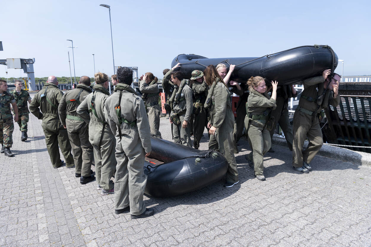 Mariniers zijn niets voor niets zeesoldaten, dus met de rubberboot naar het water.