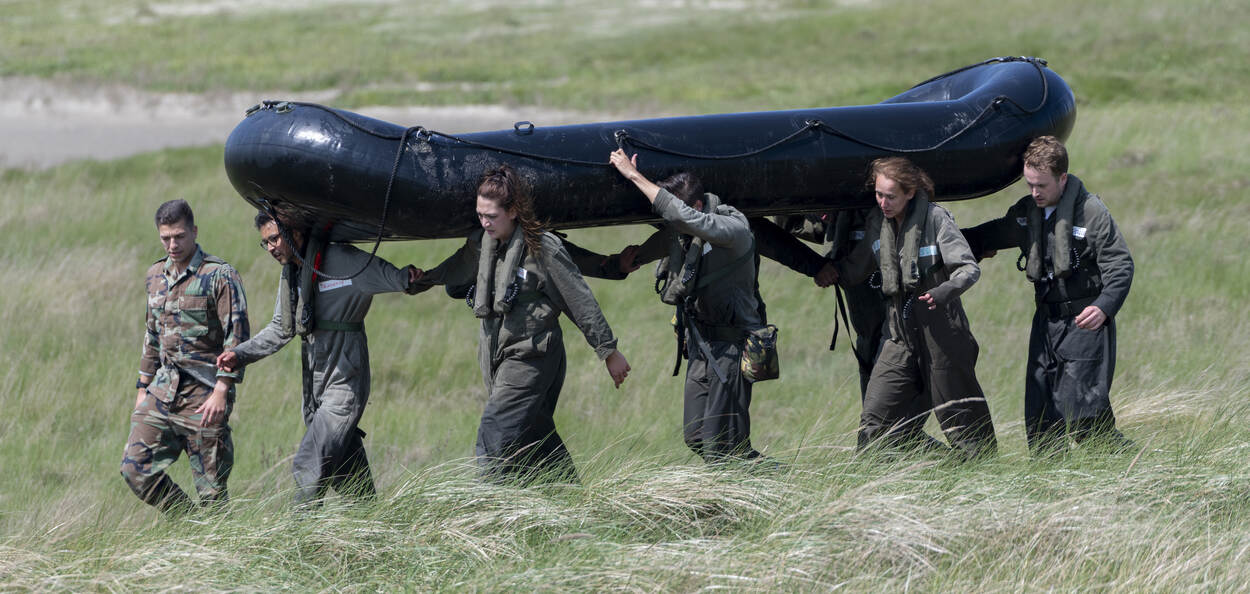 Het gaat om snelheid, leiderschap en communicatie”, concludeert Brieneke. “Maar bij de groepen waren nog wel eens wat veel kapiteins op het schip. De instructeurs vonden dat typisch horen bij een groep als de onze: Iedereen heeft een mening en laat dat horen ook. Met jonge militairen maken ze dat haast nooit mee.” Het ging dus van het opzetten van de boogtenten, vervoeren van een ‘gewonde’ tot aan het navigeren in een rubberbootje. “Een van de deelnemers zei: 'Ik heb blauwe plekken en spierpijn, maar ook een grote glimlach'”, weet Peter.