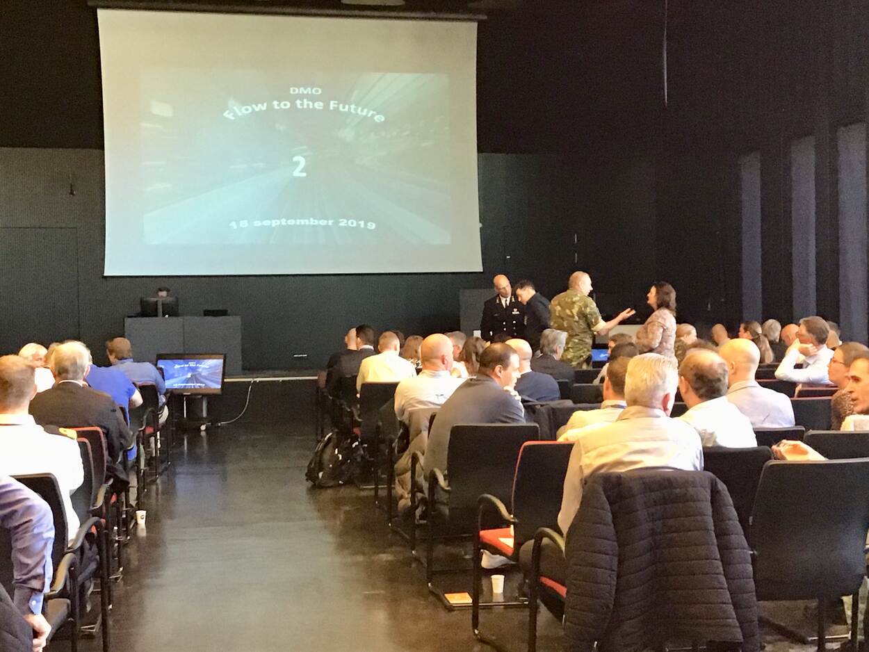 Directeur DMO vice-admiraal Arie Jan de Waard verzorgde de opening. “We staan er hartstikke goed voor”, hield hij de goedgevulde zaal voor. “Maar we staan hier niet om te zenden, want uw feedback hebben we hard nodig om onze strategische kaart nog eens goed tegen het licht te houden.” Daarna gaf Harmen Alkema - directeur Bestuur & Bedrijfsvoering DMO - een toelichting over wat Flow to the Future inhoudt en wat het beoogde doel is. “We moeten met elkaar in gesprek blijven, elkaar meer waarderen en delen waarop we trots zijn.”