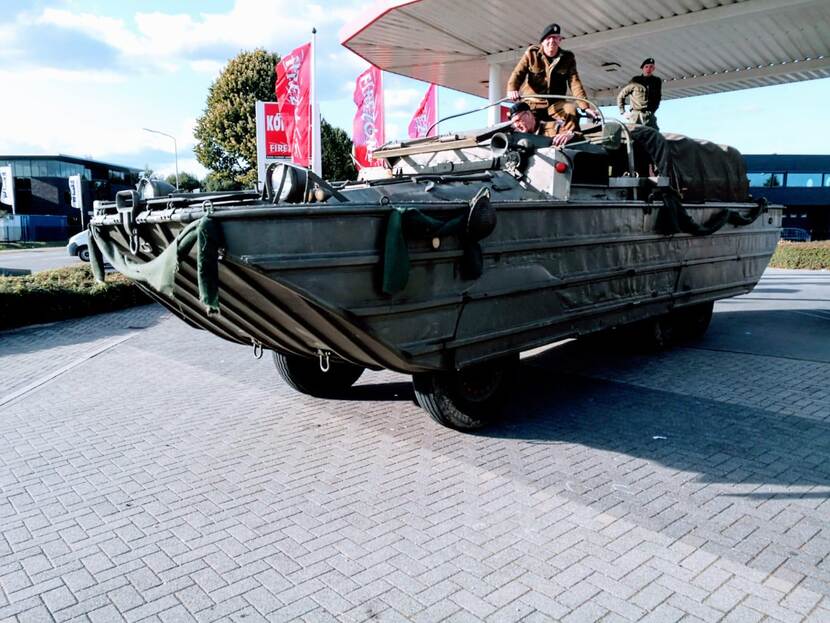 Het was even of de Afdeling Brand- en Bedrijfsstoffen (ABB) terug was in 1944. Medewerkers van het Sidek Devidzic en Teun van den Oord togen vorige maand met een tankauto richting Nijmegen, om daar historische voertuigen te voorzien van de nodige brandstof. De bonte stoet van onder meer pantserwagens en amfibische voertuigen maakte deel uit van de herdenking 75 jaar Operatie Market Garden. In totaal leverde het ABB 25.000 liter benzine en 5.000 liter benzine af.