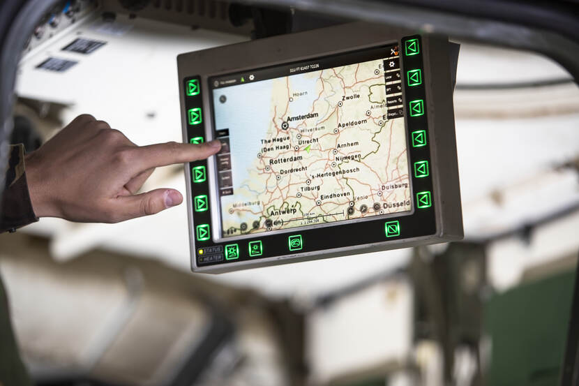Het scherm voor de militairen achterin de CV90. De gebruikers gaan vooral merken dat het nieuwe systeem sneller reageert.