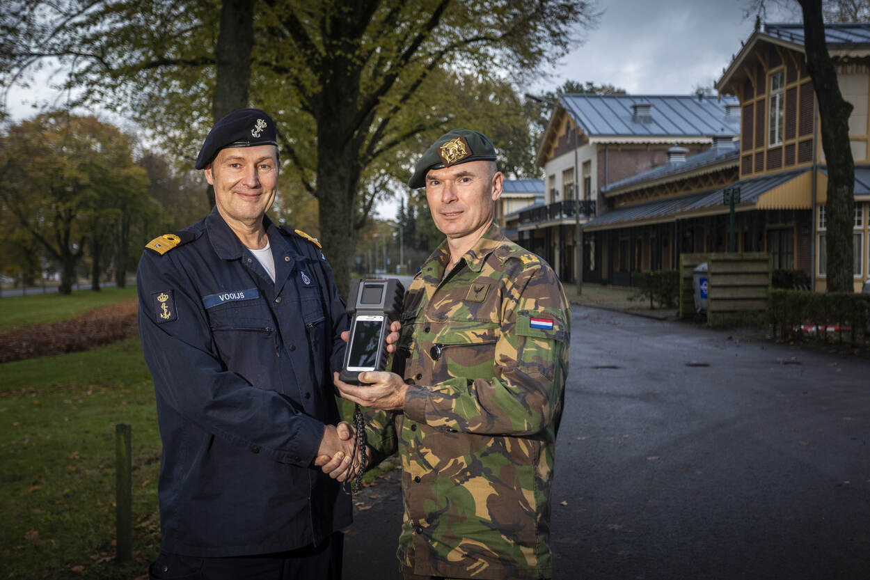 DMO/JIVC heeft deze oefening gebruikt om, in nauwe samenwerking met de leverancier, de middelen te gebruiken en zo al lerend en doende de configuratiefase te doorlopen. Biometrie is een project van het JIVC dat valt onder het programma Counter-IED Blok 3 van het Materieel-logistiek Commando. Commandeur Cees Vooijs, plaatsvervangend-directeur JIVC, gaf namens de DMO de aftrap van de implementatiefase. Hij droeg de eerste handheld symbolisch over te aan brigadegeneraal Joland Dubbeldam van het Commando Landstrijdkrachten (foto).