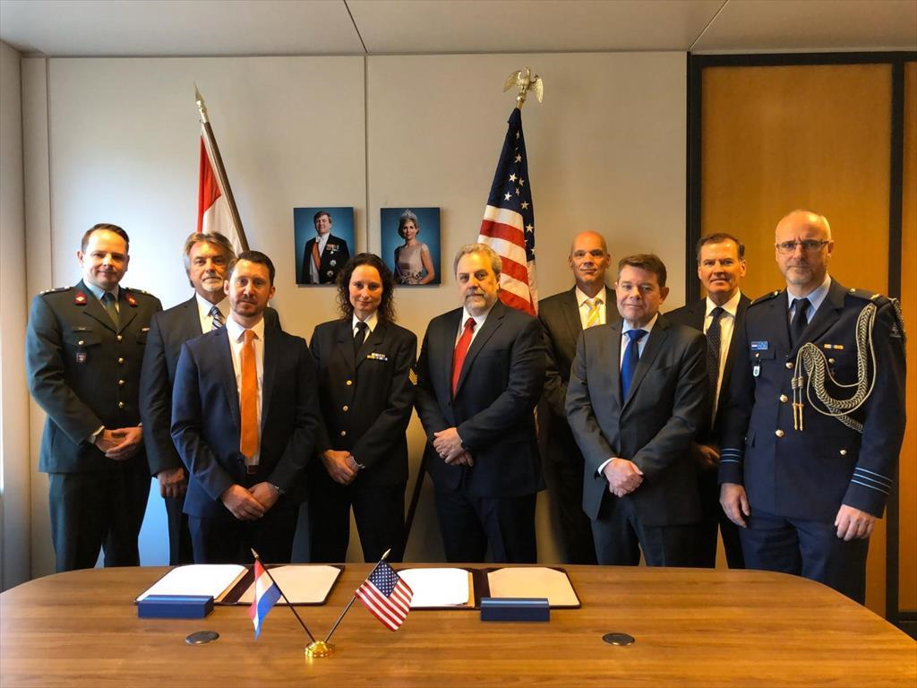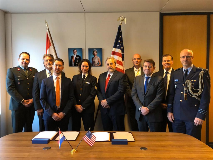 Directeur Defensie Materieel Organisatie (DMO) vice-admiraal Arie Jan de Waard en Arnout Damen, de nieuwe CEO van Damen Shipyards Group, zetten hun handtekening onder de overeenkomst. Dat gebeurde vóór de beperkingen door de uitbraak van het coronavirus.