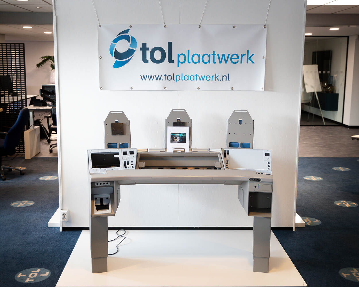 Bescheidenheid en no nonsense voeren de boventoon bij het echte Volendamse bedrijf Tol Plaatwerk. Echter, de showroom verraadt dat deze specialisten toch zeker in de eredivisie van de staal-, RVS-, en aluminium plaatbewerking passen. “Kijk, deze maakten we voor de 3D-torensimulator op Schiphol-Oost”, wijst directeur Cor Kwakman (49) naar een van de tientallen tentoongestelde desks. Afgelopen september werd de state of the art simulator voor (aankomende) militaire luchtverkeersleiders door koning Willem-Alexander geopend.