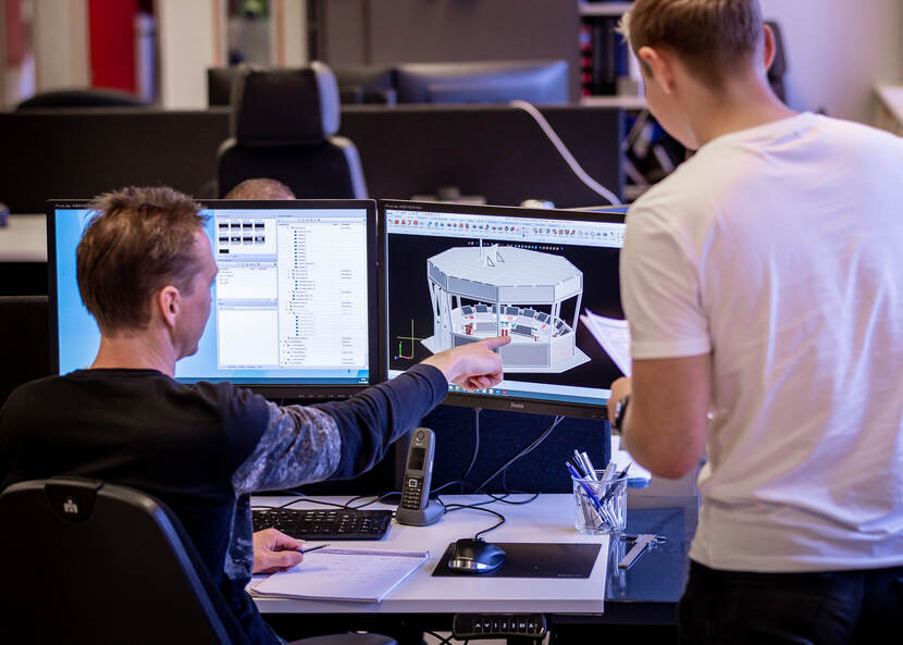Engineer Toon Visser is verantwoordelijk voor het ontwerp van de desks in de 3D-torensimulator. “Een ontwerp gaat soms wel 50 keer heen en weer. Dan is het net pingpongen met de opdrachtgever. Je wordt constant uitgedaagd en dat maakt het leuk”, vertelt de engineer die nog zichtbaar baalt dat hij niet bij de feestelijke opening van de simulator was. “Super jammer. Maar ja, het viel allemaal net in de Corona-tijd, dus kon er maar een beperkt aantal mensen bij aanwezig zijn.”