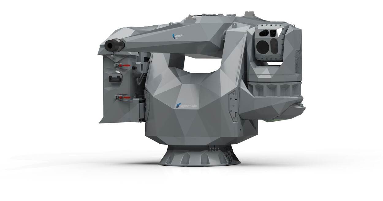 Dit nieuwe, van afstand bestuurbare, scheepskanon weegt ‘slechts’ 574 kilogram (inclusief 225 patronen). Het huidige kanon van Rheinmetall, de MLG 27 (zie video), heeft een massa van 815 kg en veel minder munitie ‘aan boord’.