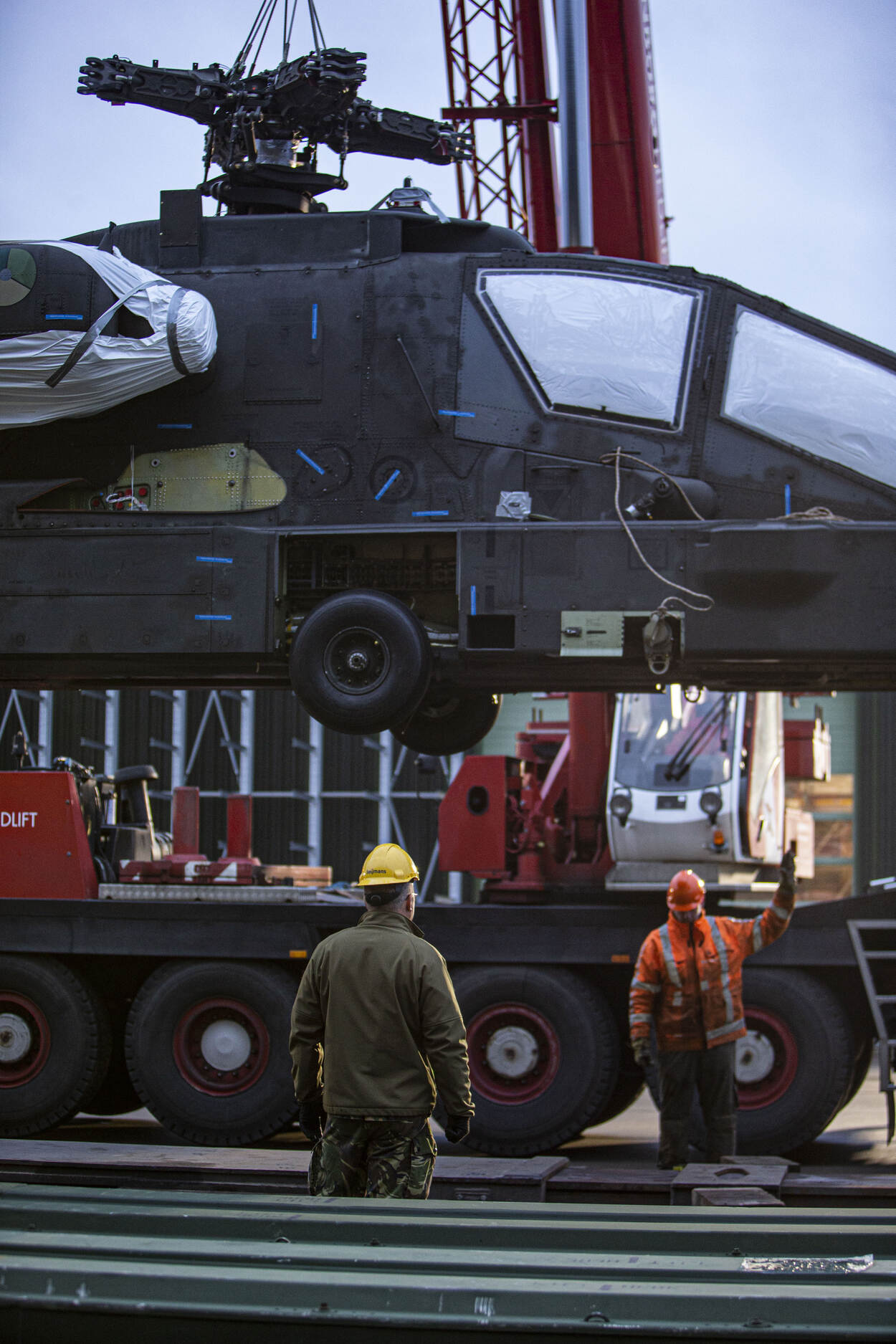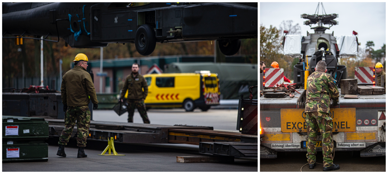 Aan de verscheping is een flinke logistieke voorbereiding voorafgegaan. Want wie denkt dat het een kwestie van inladen en verschepen is, heeft het mis. Afgelopen maanden werden de helikopters door personeel van de luchtmacht zo uit elkaar gehaald, dat ze nu in bijna niets nog op een Apache lijken. Op vrachtwagens zijn deze ontmantelde helikopters vanuit het Logistiek Centrum Woensdrecht in kolonne naar het schip in Antwerpen gereden en worden in opdracht van de Defensie Verkeers & Vervoersorganisatie (DVVO) naar de VS gevaren. Een Amerikaans team was speciaal ingevlogen om het gehele transporttraject te ondersteunen.