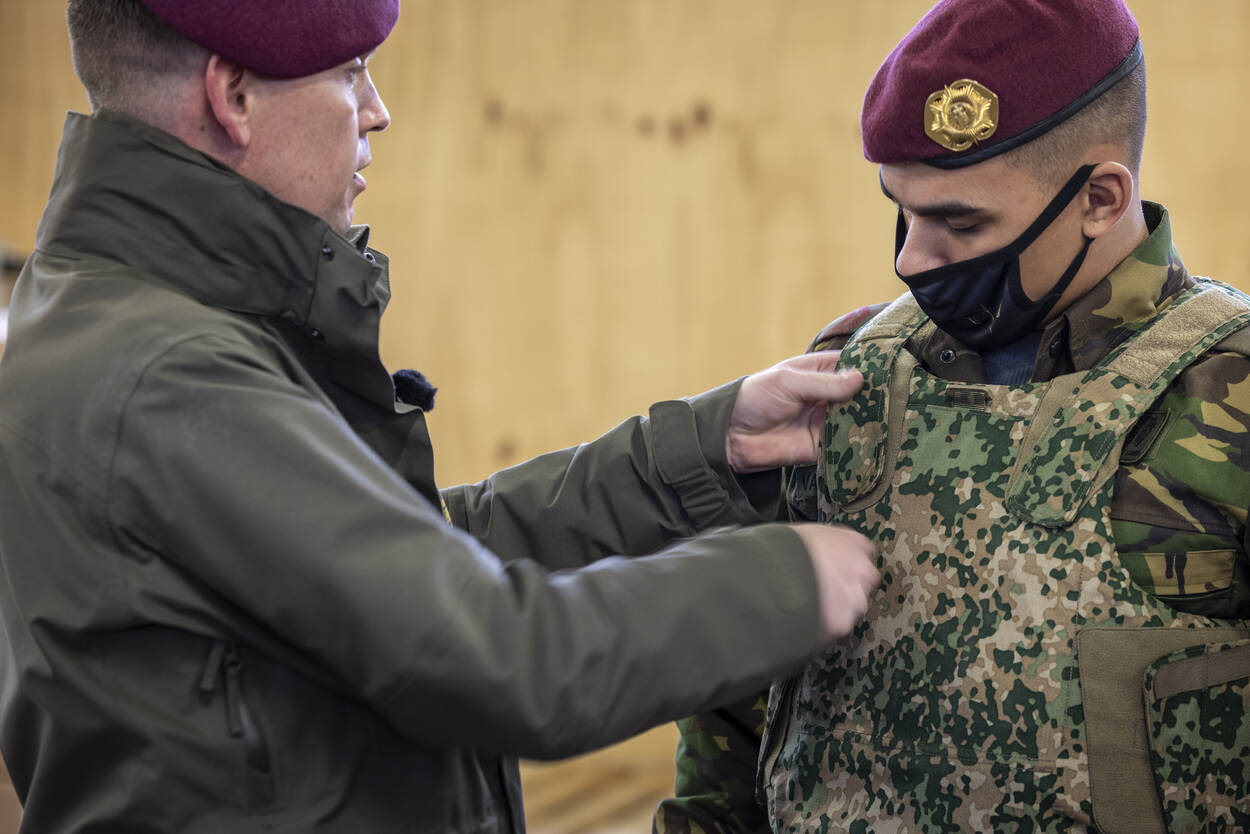 Dat zei Directeur Wapensystemen&Bedrijven brigadegeneraal Ernst Dobbenberg bij het uitreiken van de eerste pakketten nieuwe gevechtsuitrusting en de helm aan militairen van 12 Infanteriebataljon Luchtmobiel in Schaarsbergen. De eenheid ontving de eerste 40 pakketten en kreeg gelijk uitleg over het gebruik van de uitrustingsstukken. Vanaf nu krijgen wekelijks tientallen (oplopend tot 400) militairen hun spullen vanuit het Kleding- en Persoonsgebonden Uitrustingbedrijf van de Defensie Materieel Organisatie. Te beginnen met eenheden die binnenkort worden uitgezonden.