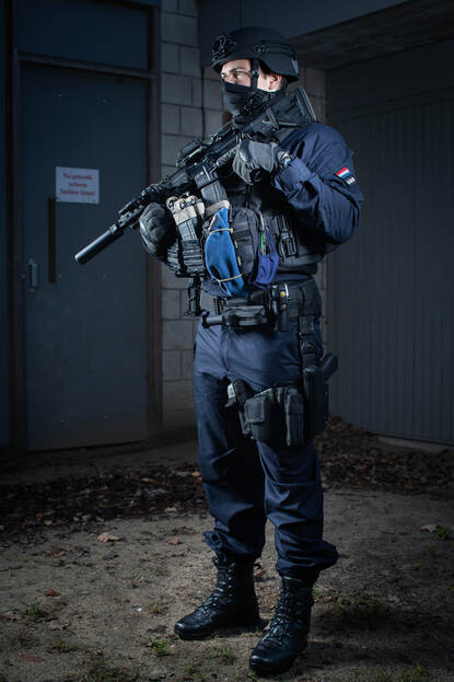 De militairen van de Koninklijke Landmacht zijn niet de enigen die de nieuwe gevechtsuitrusting en helm hebben gekregen. Ook de Koninklijke Marechaussee verwelkomt de spullen. Operators van het eskadron Hoog Risico Beveiliging (HRB) en de Gewapende Beveiliging Burgerluchtvaart (GBB) op Schiphol ondergaan dit jaar een transformatie. Ze ontvangen een 3-tal nieuwe uitrustingsstukken. Het betreft de battle belt, het beschermende vest en de zwarte helm. De ‘riem’ en het vest worden naar verwachting in het derde kwartaal van dit jaar uitgeleverd. Met de verspreiding van de helm is al begonnen.