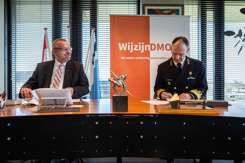 Directeur Projecten van de Defensie Materieel Organisatie commandeur Dick Kreiter tekende het contract met Hirtenberger Defence Europe GmbH. De nieuwe mortieren kunnen verder en nauwkeuriger schieten en zijn sneller te bedienen. De zogenoemde raamovereenkomst geldt voor 10 jaar met een optie voor nog eens 10 jaar. Na de kwalificatie en typeclassificatie van de nieuwe mortieren én munitie moeten de eerste van deze 122 wapensystemen over ongeveer 2 jaar instromen. Meer over Hirtenberger leest u hier. (foto: sergeant-majoor Gerben van Es)