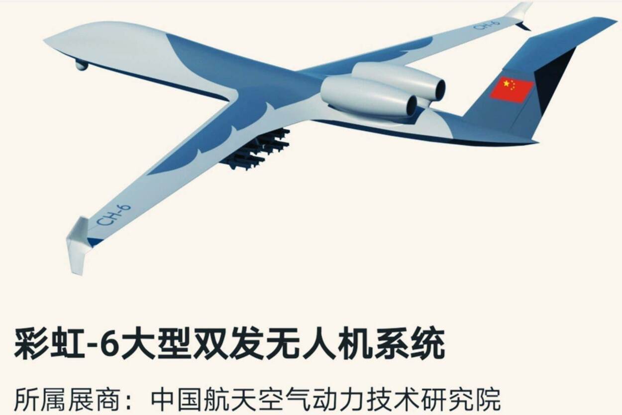 China heeft de CH-6, een nieuw groot tweemotorig onbemand vliegend systeem, getoond op de Zhuhai Airshow.