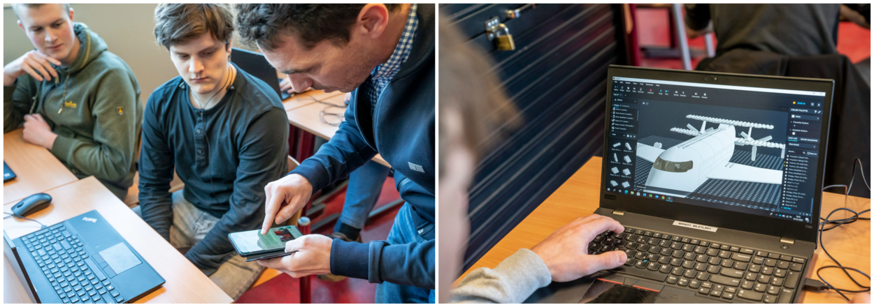 De studenten bedenken en bouwen niet alleen het ontwerp, ze maken ook een planning, een berekening van de kostprijs en ze moeten het idee pitchen. Studenten Rick van Dijk en Jur de Groot zitten op het spoor van een soort futuristisch watervliegtuig, gebaseerd op het bestaande Ekranoplan vliegtuig. In een speciaal door LEGO ontworpen digitaal vormgevingsprogramma, zetten ze de eerste lijnen uit. “Dit vliegtuig vliegt dicht op het water en is daardoor bijna niet door radar te detecteren. Het kan snel en vrijwel ongezien troepen en materieel verplaatsen.”
