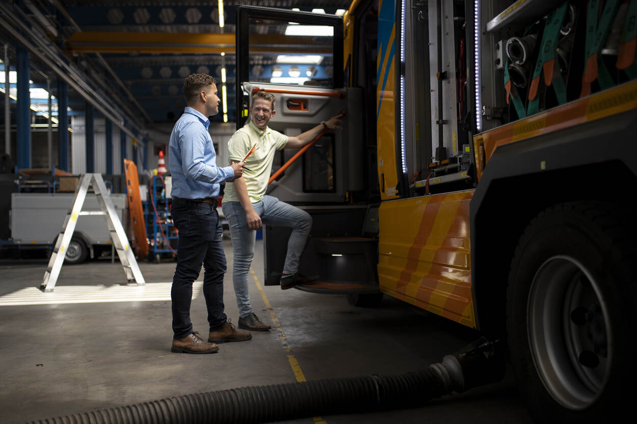 Een van de bedrijven waar Van Engeland regelmatig over de vloer komt is Kenbri Fire Fighting in Numansdorp. Hier worden op het moment onder andere twee nieuwe hybride brandweervoertuigen voor Defensie geproduceerd.
