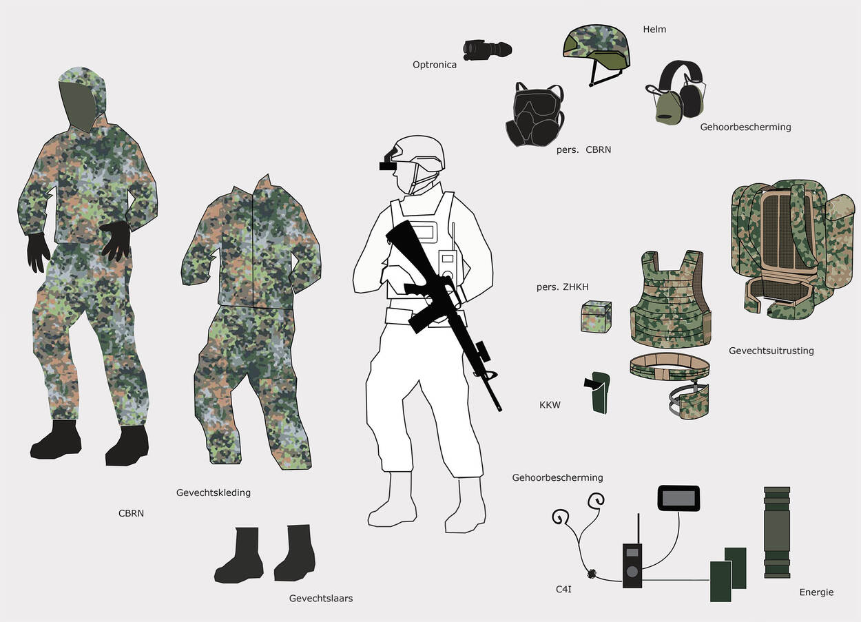 Alleen door continue transformatie van zijn persoonsgebonden uitrusting heeft de gevechtssoldaat op het slagveld de grootste kans op overleven.